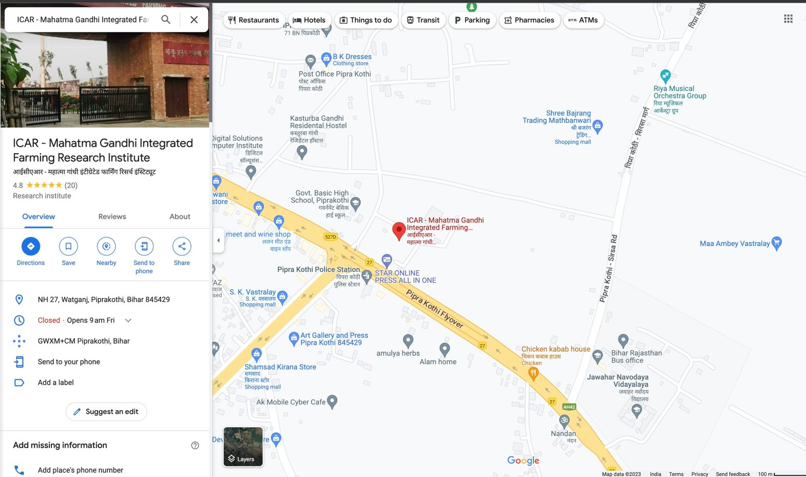 ICAR-Mahatma Gandhi Integrated Farming Research Institute, Piprakothi, Motihari, 845429